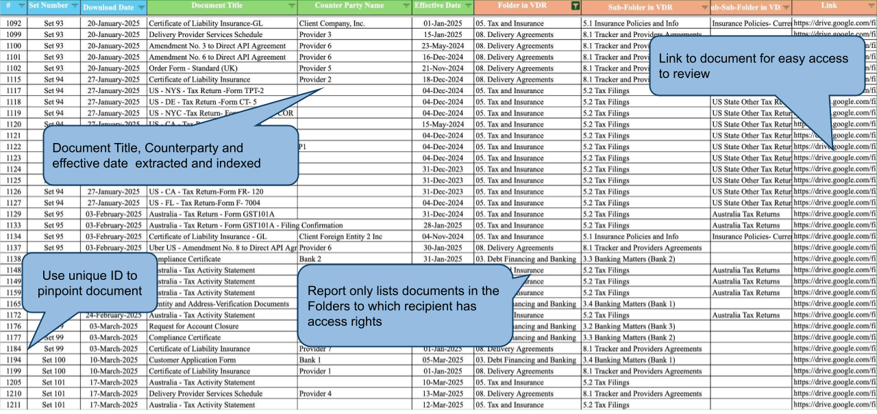Outputs: Weekly Reports track all new documents entering the system and these What’s New Reports are distributed with access controls to assure confidentiality.